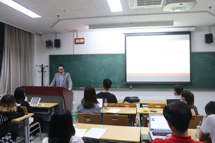在评论与问答环节,杰弗里·曼考夫与在场师生就中美俄三国关系、自由主义意识形态与全球秩序、美国外交政策等问题进行了热烈的交流。(李羽睿供稿)